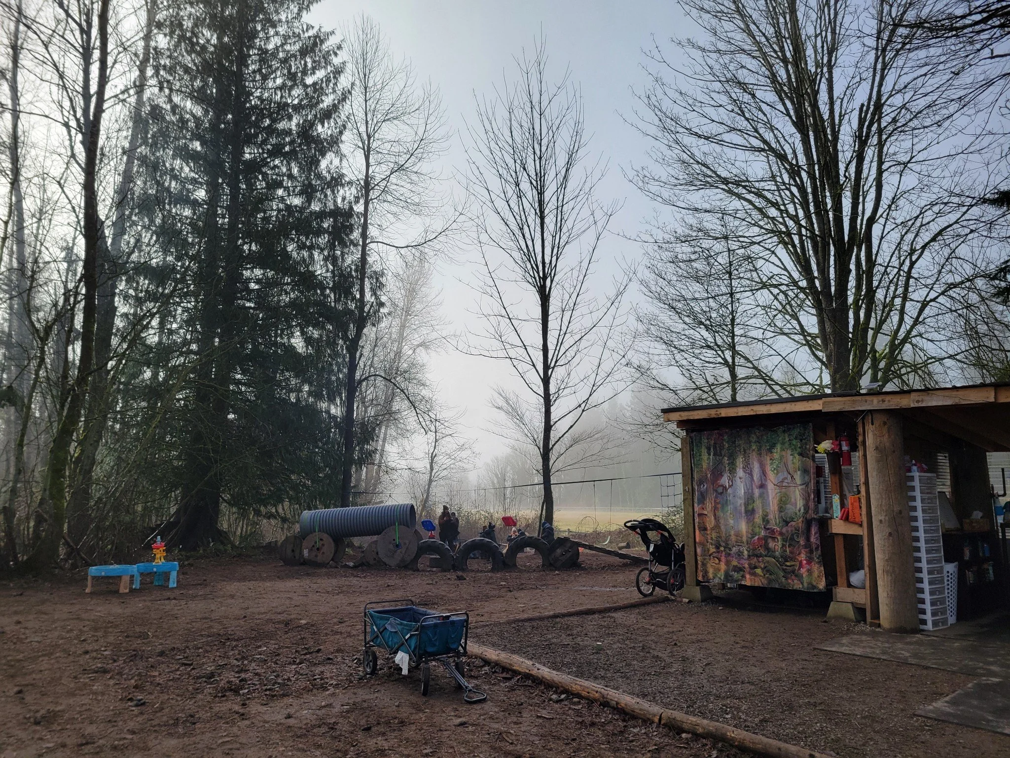 Our covered, partially enclosed learning spaces create room for gathering, making, observing, and learning together throughout the seasons. These areas provide structure without separating children from the sights, sounds, and rhythms of the outdoors.